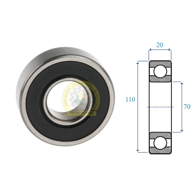 Codice di riferimento - 6014 - 2RS - Diametro interno - d 70 mm Diametro esterno - D 110 mm Altezza - B 20 mm Serie 6000 - 2RS peso netto 0.561 kg