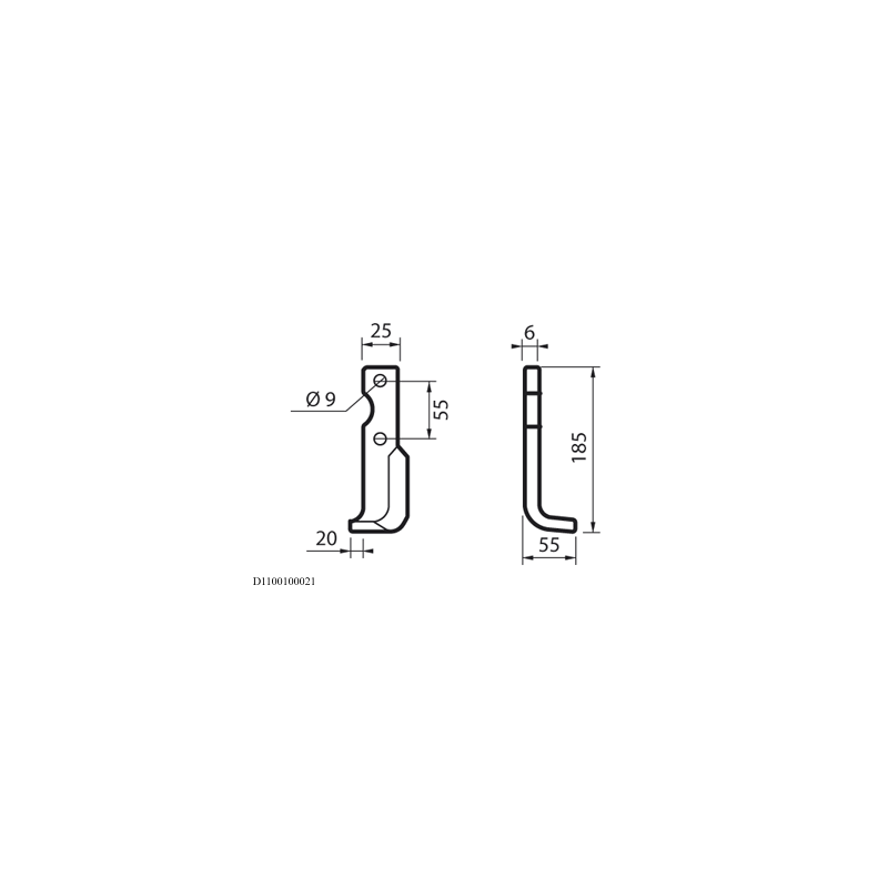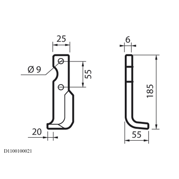 Zappa curva sinistra Diametro del foro 8.5 mm Interasse 55 mm Piatto 25x6 mmLunghezza - X 55 mm Lunghezza - Y 185 mm Lunghezza - Z 20 mm Larghezza piatto 25 mm Spessore piatto 6 mmForma Curva Lato Sinistra Diametro del foro 8.5 mm Interasse 55 mm Altro lato D1100100020 peso netto 0.24 kg