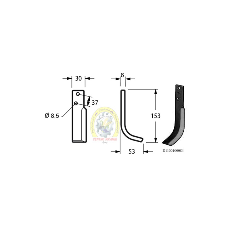 Zappa squadro sinistra Diametro del foro 8.5 mm Interasse 37 mm Piatto 30x6 mm