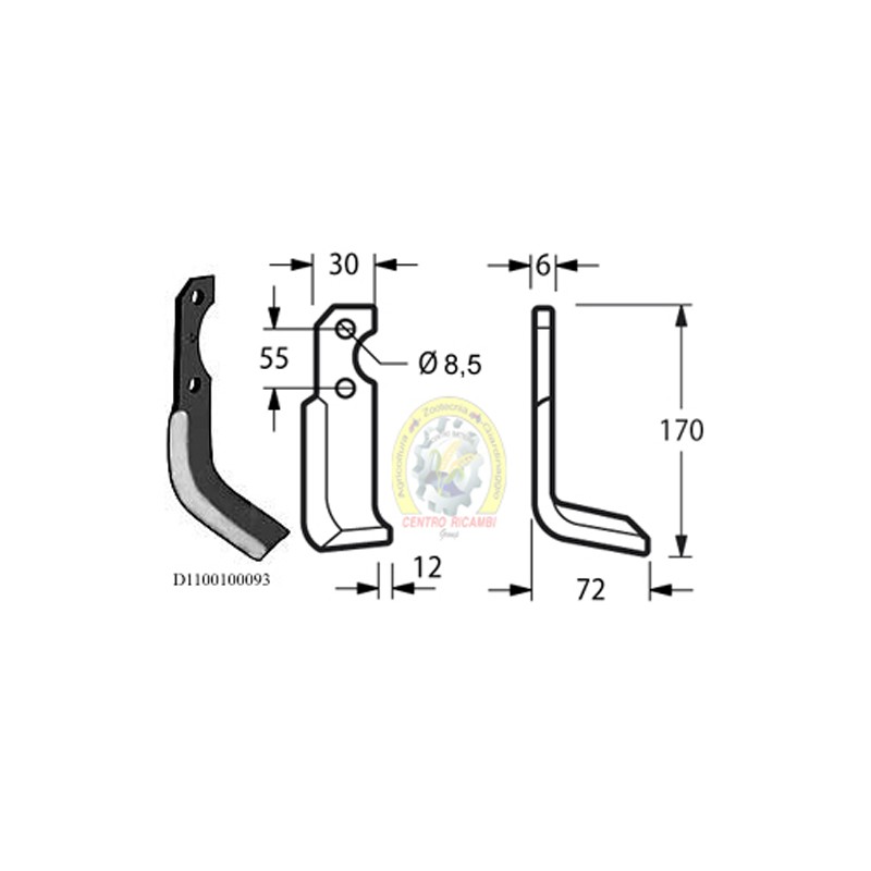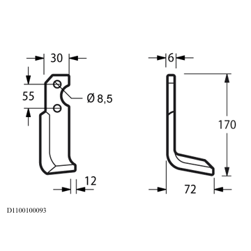 Zappa squadro destra Diametro del foro 8.5 mm Interasse 55 mm Piatto 30x6 mmOEM F015517 13050535