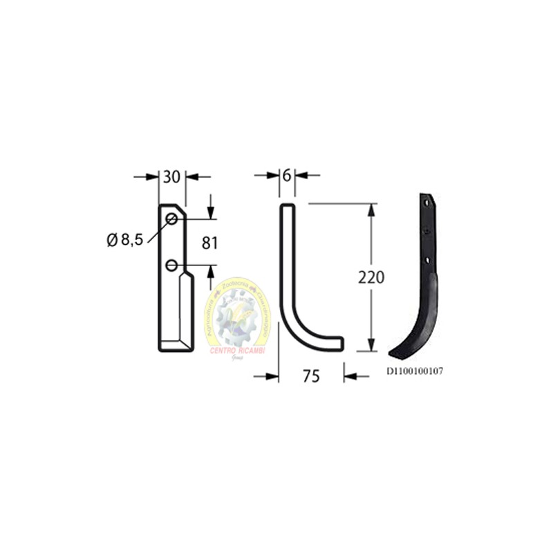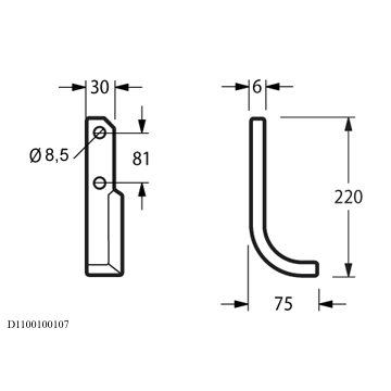 Zappa curva sinistra Diametro del foro 8.5 mm Interasse 81 mm Piatto 30x6 mmOEM 671014Lunghezza - X 75 mm Lunghezza - Y 220 mm Larghezza piatto 30 mm Spessore piatto 6 mmForma Curva Lato Sinistra Diametro del foro 8.5 mm Interasse 81 mm Altro lato D1100100106peso netto 0.35 kg