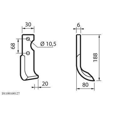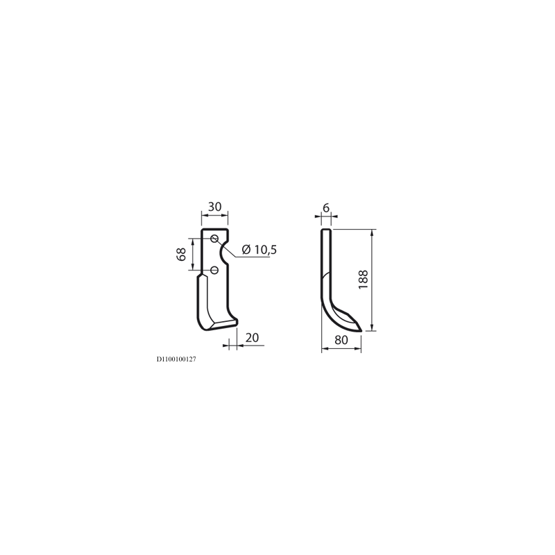 ZAPPA PASQUALI DESTRACurvatura80 mm Foro10,5 mm Inclinazione8 mm Interasse Fori68 mm Lunghezza184 mm Piatto30 x 6 mm TipoCURVO