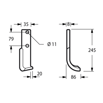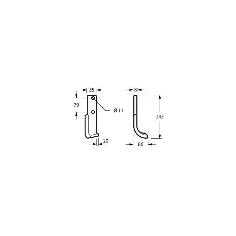 ZAPPA PASQUALICurvatura80 mm Foro10,5 mm Inclinazione25 mm Interasse Fori80 mm Lunghezza237 mm Piatto35 x 8 mm TipoCURVOSINISTRA