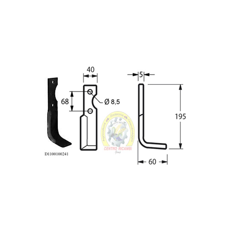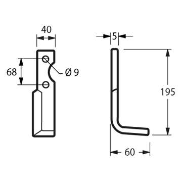 Zappa squadro destra Diametro del foro 8.5 mm Interasse 68 mm Piatto 40x5 mmOEM 6CM004