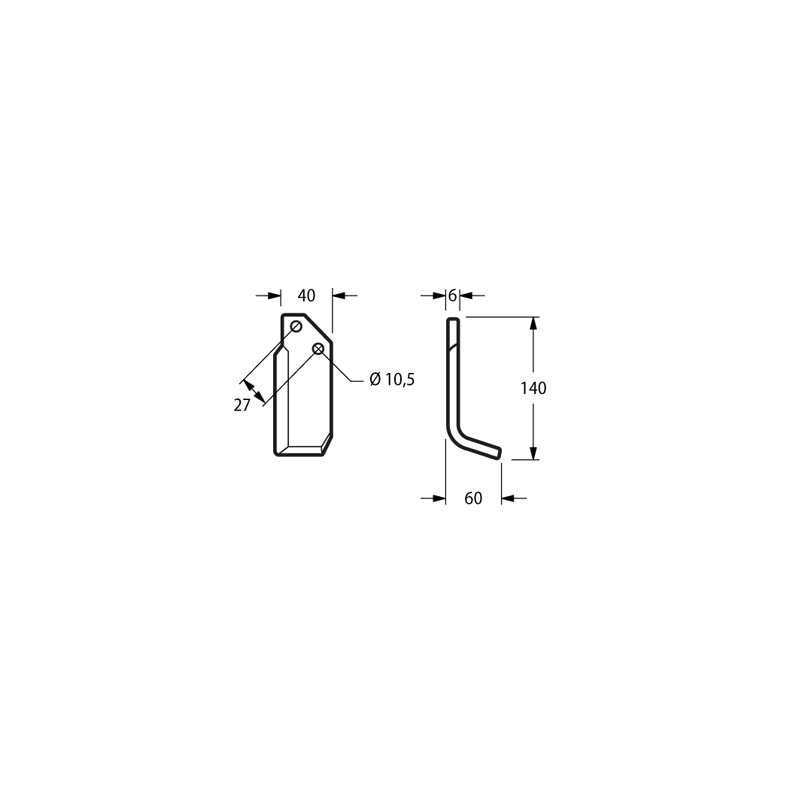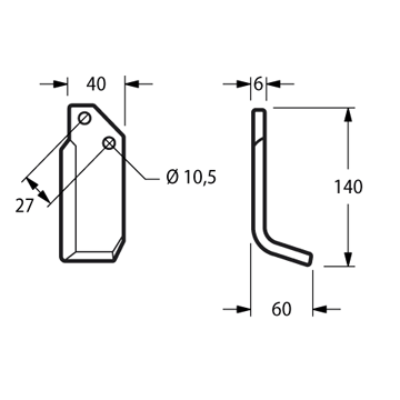 Zappa curva destra Diametro del foro 10.5 mm Interasse 27 mm Piatto 40x6 mm