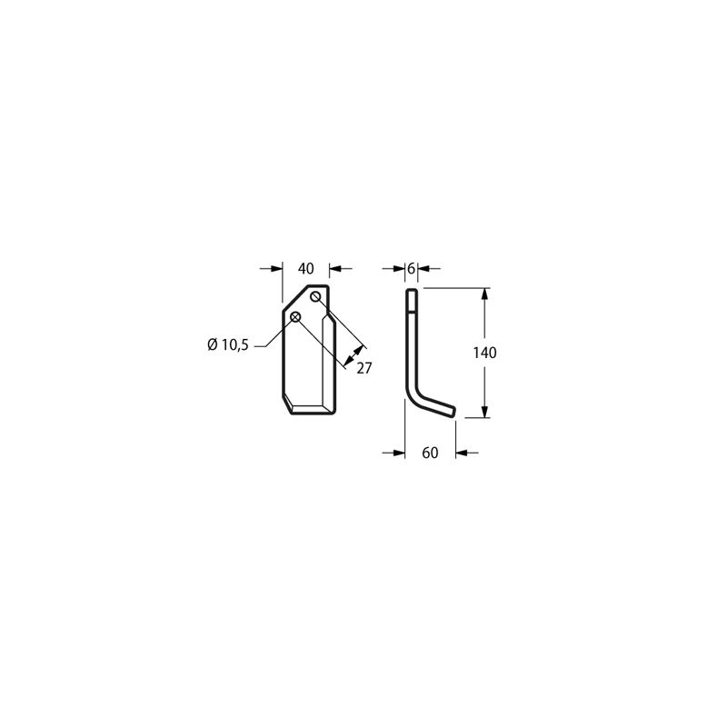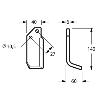 Zappa curva sinistra Diametro del foro 10.5 mm Interasse 27 mm Piatto 40x6 mm