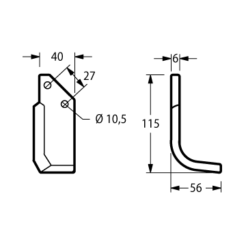Zappa curva destra Diametro del foro 10.5 mm Interasse 27 mm Piatto 40x6 mmLunghezza - X 56 mm Lunghezza - Y 115 mm Lunghezza - Z 15 mm Larghezza piatto 40 mm Forma Curva Lato Destra Diametro del foro 10.5 mm Interasse 27 mm Altro lato D1100100287 peso netto 0.28 kg