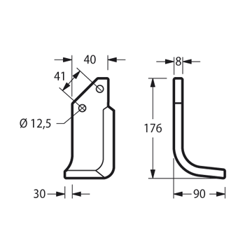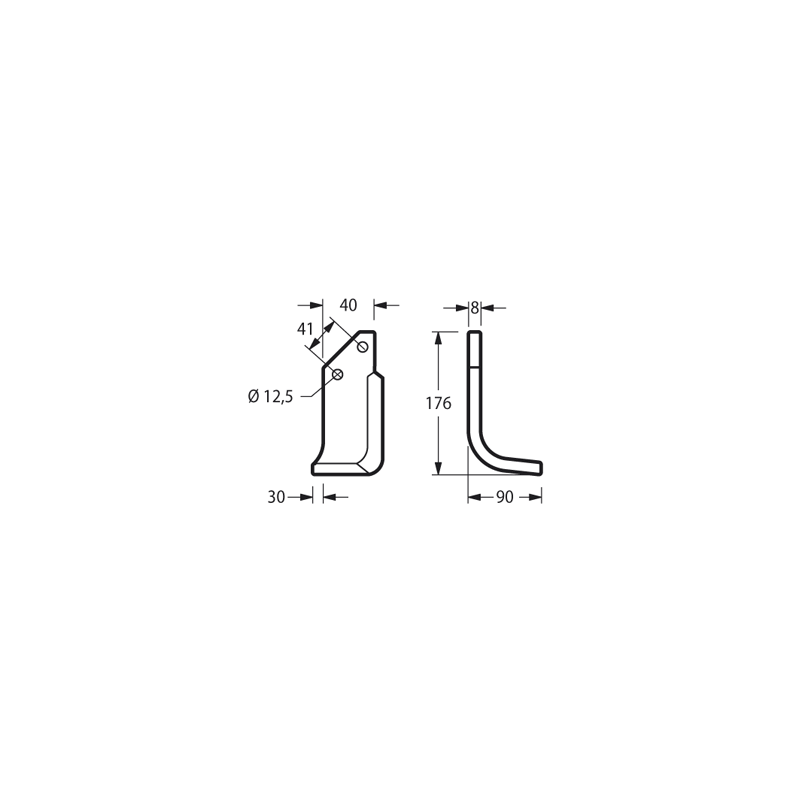 Zappa curva destra Diametro del foro 12.5 mm Interasse 41 mm Piatto 40x8 mm