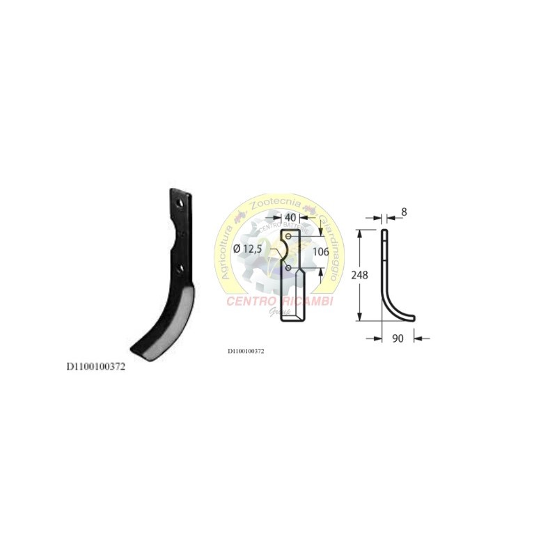 Zappa curva sinistra Diametro del foro 12.5 mm Interasse 105 mm Piatto 40x8 mm