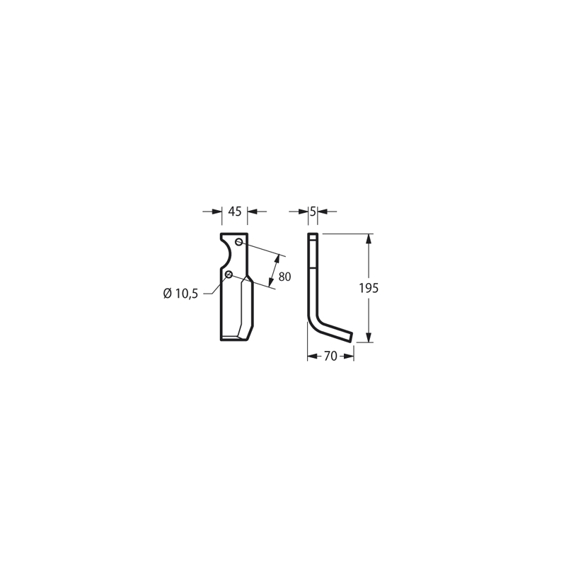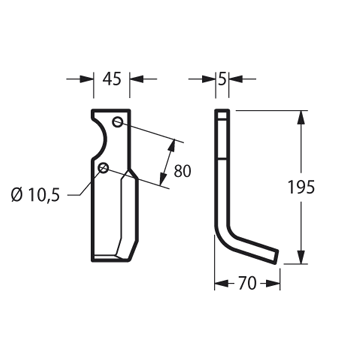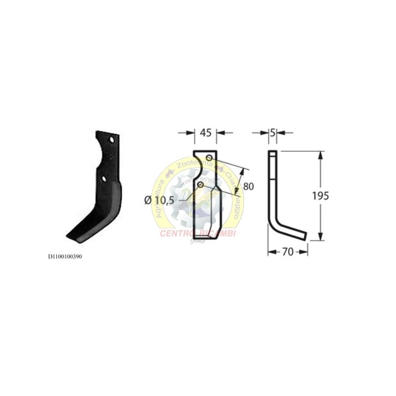 Zappa curva sinistra Diametro del foro 8.5 mm Interasse 68 mm Piatto 35x5 mmzappa sx BARBIERI RLA1 AIRONE