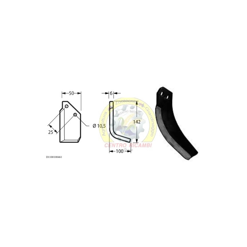 Zappa curva destra Diametro del foro 12.5 mm Interasse 46 mm Piatto 60x6 mmOEM 12000101D