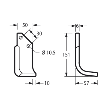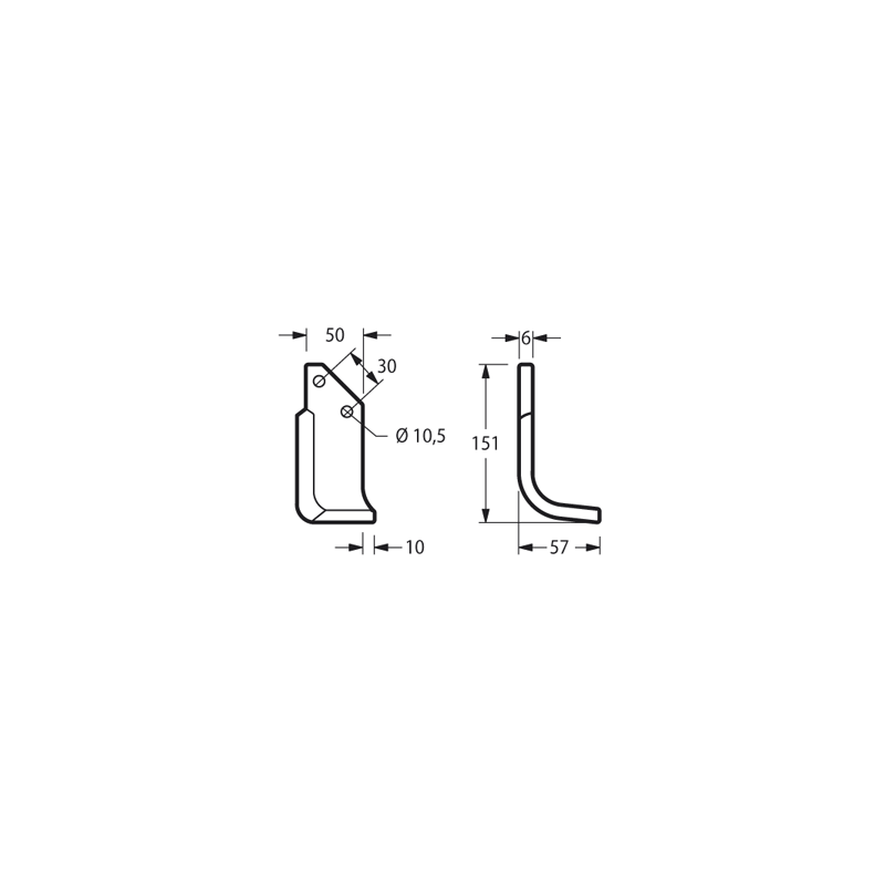 ZAPPA BADALINI Curvatura58 mm Foro10,5 mm Inclinazione10 mm Interasse Fori30 mm Lunghezza152 mm Piatto50 x 6 mmTipoCURVO