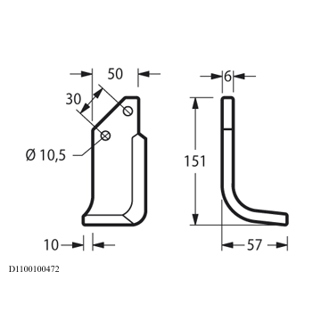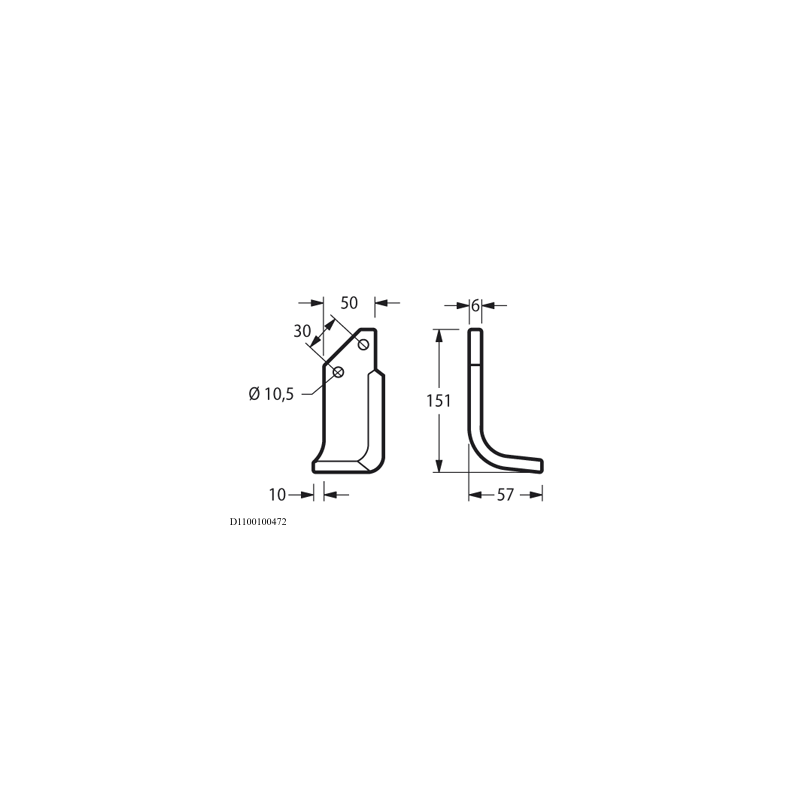 ZAPPA BADALINICurvatura 58 mm Foro10,5 mm Inclinazione10 mmInterasse Fori30 mm Lunghezza152 mm Piatto50 x 6 mm TipoCURVO