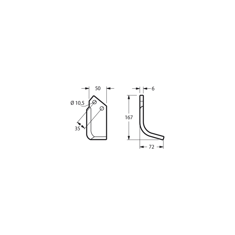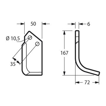 Zappa curva destra VALPADANALunghezza - X 72 mm Lunghezza - Y 167 mm Larghezza piatto 50 mm Spessore piatto 6 mmForma Curva Lato Destra Diametro del foro 10.5 mm Interasse 35 mm Altro lato D1100100486peso netto 0.4 kg