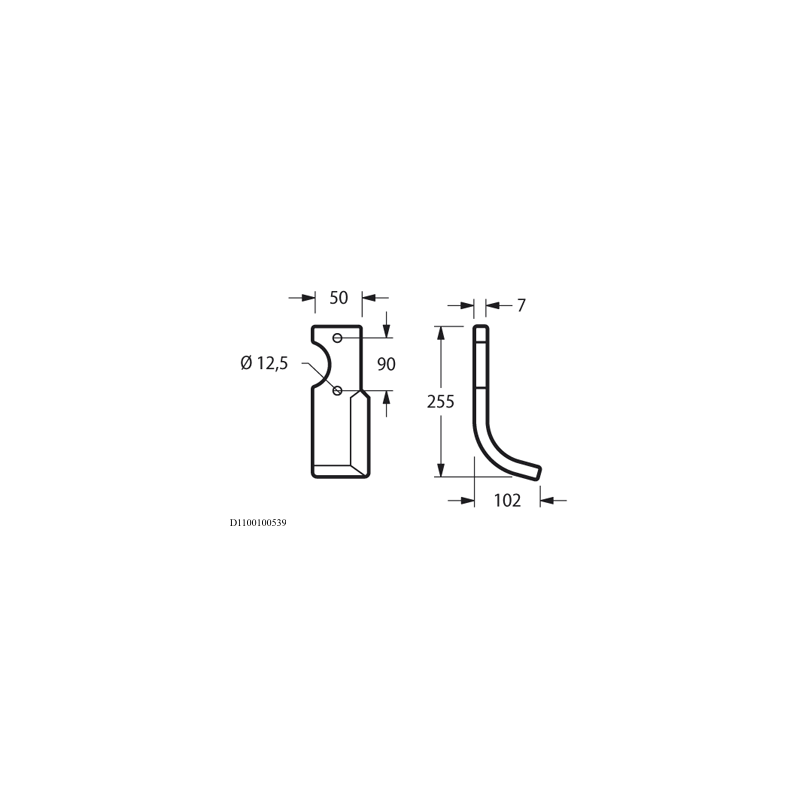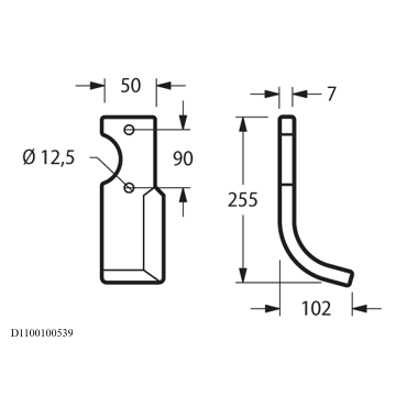 Zappa curva sinistra Diametro del foro 12.5 mm Interasse 90 mm Piatto 50x7 mmOEM 12032