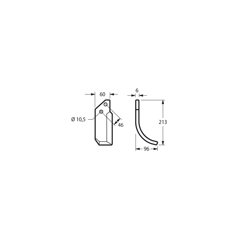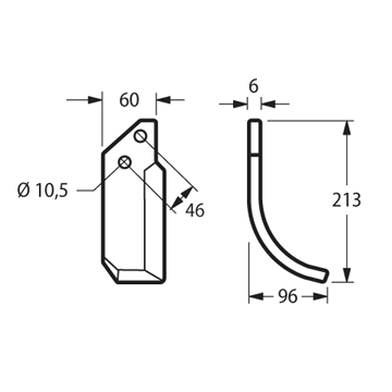 Zappa curva sinistra Diametro del foro 10.5 mm Interasse 46 mm Piatto 60x6 mm