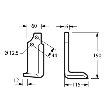 Zappa curva destra Diametro del foro 12.5 mm Interasse 44 mm Piatto 60x6 mmOEM 19100417