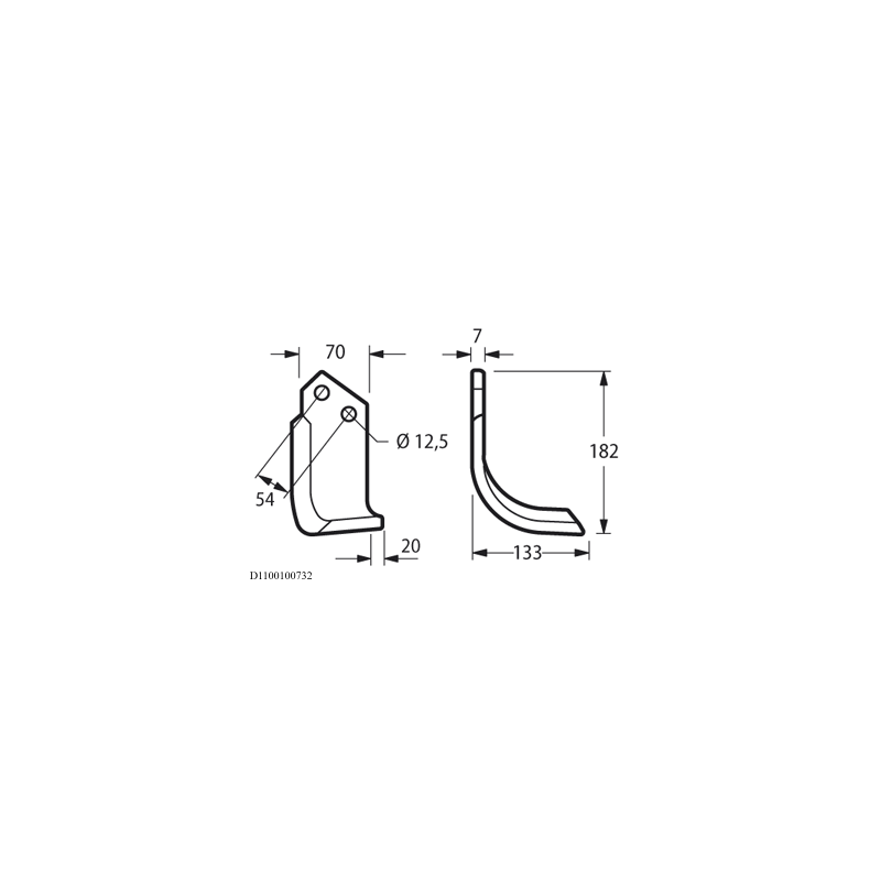 ZAPPA PEGORAROCurvatura135 mmForo12,5 mmInclinazione15 mm Interasse Fori54 mm Lunghezza180 mm Piatto70 x 7 mm TipoCURVO