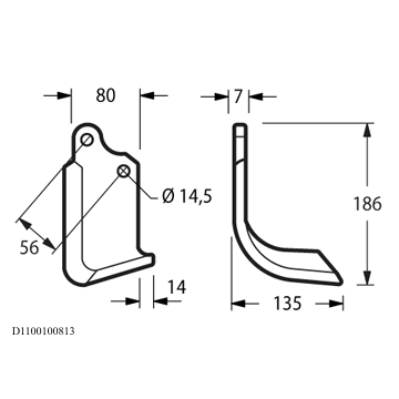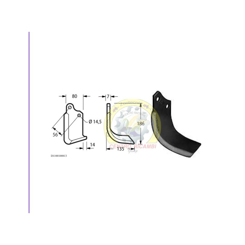 Zappa curva destra MASCHIO Lunghezza - X 135 mm Lunghezza - Y 186 mm Lunghezza - Z 14 mm Larghezza piatto 80 mm Spessore piatto 6 mmForma Curva Lato Destra Altro lato D1100100814Diametro del foro 14.5 mm Interasse 56 mm peso netto 0.85 kg adattabile aZappatorMASCHIO