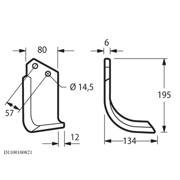 Zappa curva destra Diametro del foro 14.5 mm Interasse 57 mm Piatto 80x6 mmOEM 322515 322519Lunghezza - X 135 mm Lunghezza - Y 195 mm Lunghezza - Z 20 mm Larghezza piatto 80 mm Spessore piatto 6 mmForma Curva Lato Destra Diametro del foro 14.5 mm Interasse 57 mm Altro lato D1100100822peso netto 0.85 kg