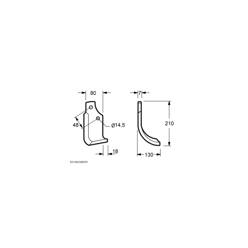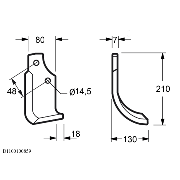 Zappa curva destra Diametro del foro 14.5 mm Interasse 48 mm Piatto 80x7 mmOEM 29100405 29100406Lunghezza - X 130 mm Lunghezza - Y 210 mm Lunghezza - Z 18 mm Larghezza piatto 80 mm Spessore piatto 7 mmForma Curva Lato Destra Diametro del foro 14.5 mm Interasse 48 mm Altro lato D1100100860peso netto 1.02 kg