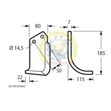 Zappa curva DestraDiametro del foro 14.5 mm Interasse 50 mm Piatto 80x7 mm