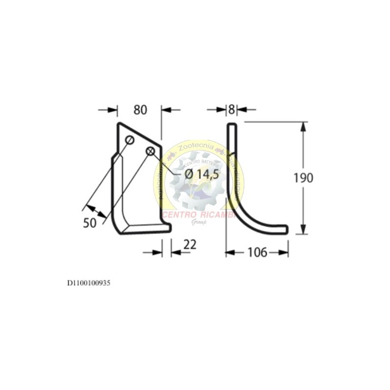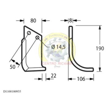 Zappa curva destra Diametro del foro 14.5 mm Interasse 50 mm Piatto 80x8 mmLunghezza - X 106 mm Lunghezza - Y 190 mm Lunghezza - Z 22 mm Larghezza piatto 80 mm Spessore piatto 8 mmForma Curva Lato Destra Diametro del foro 14.5 mm Interasse 50 mm Altro lato D1100100936peso netto 1 kg adattabile aMeritano