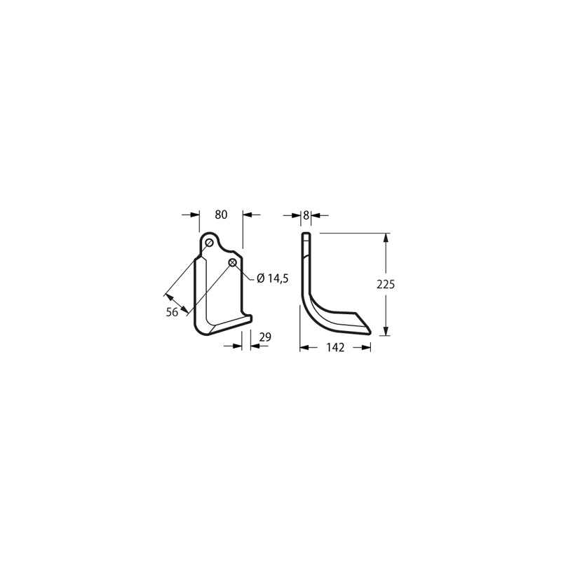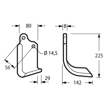 B - C - SC ARCO - ELIC. DESTRAPeso Kg: 1.300Lunghezza: 225Altezza: 142Strozzatura: 29Base Piatto 80Spessore Piatto: 8Diametro Foro 1:14.5Interasse Foro 1: 56