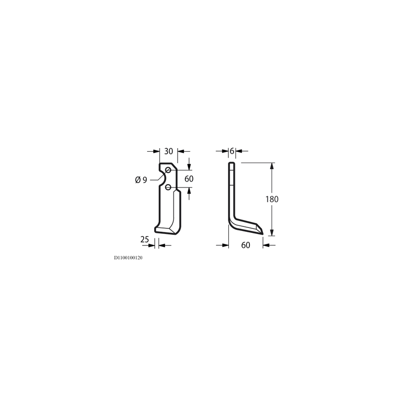 KLEIN ANG/ELIC. SINISTRALunghezza:180Altezza:60Strozzatura:25Base Piatto30Spessore Piatto:6Diametro Foro 1:9Diametro Foro 2:Interasse Foro 1:60Peso Kg:0.270