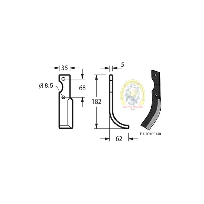Zappa curva sinistra Diametro del foro 8.5 mm Interasse 68 mm Piatto 35x5 mmzappa sx BARBIERI RLA1 AIRONE