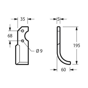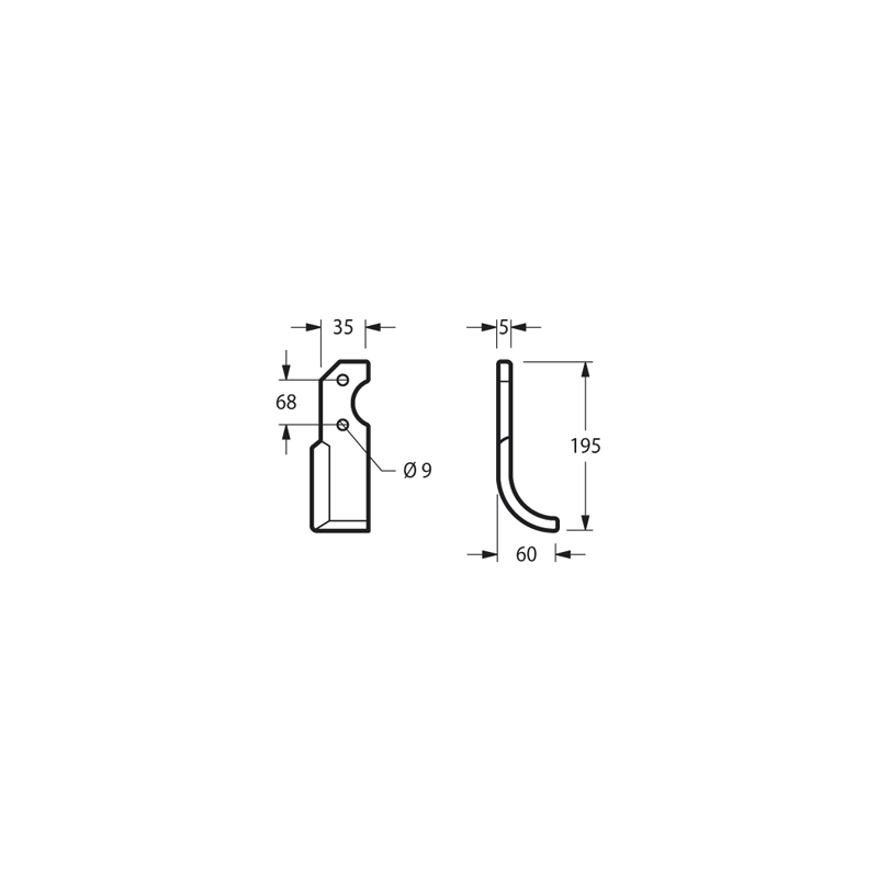 Zappa curva sinistra Diametro del foro 8.5 mm Interasse 68 mm Piatto 35x5 mmzappa sx BARBIERI RLA1 AIRONE
