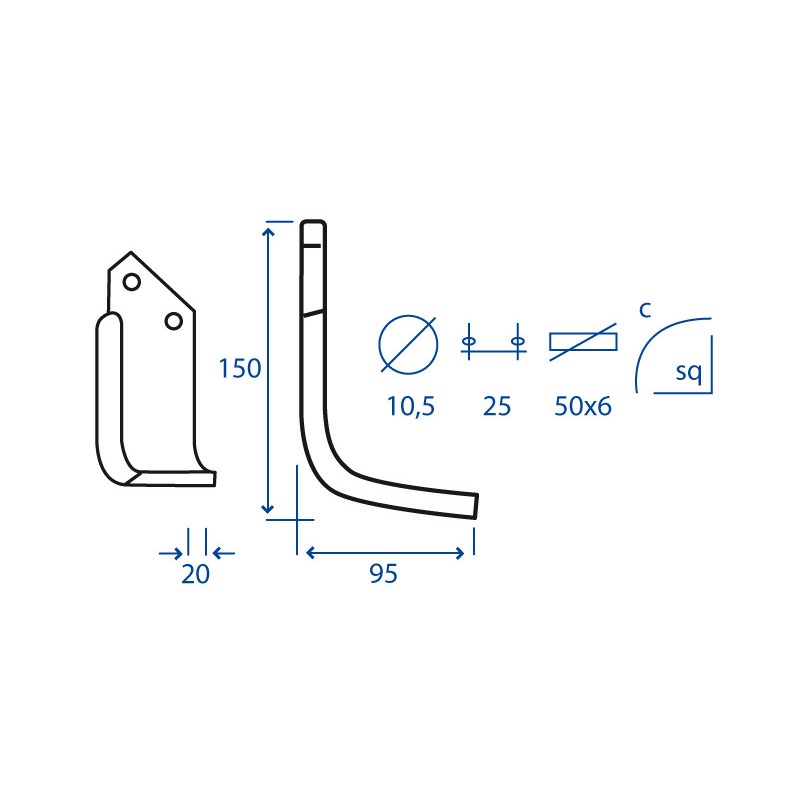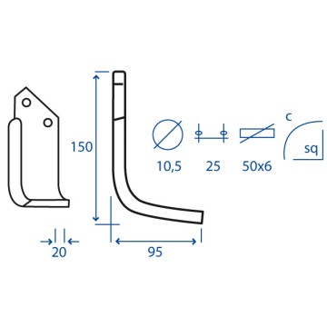 Anteprima zappa dx GOLDONI 80-40SV 55732 Zappa curva destra Diametro del foro 12.5 mm Interasse 40 mm Piatto 70x6 mmOEM 00017011 00017012