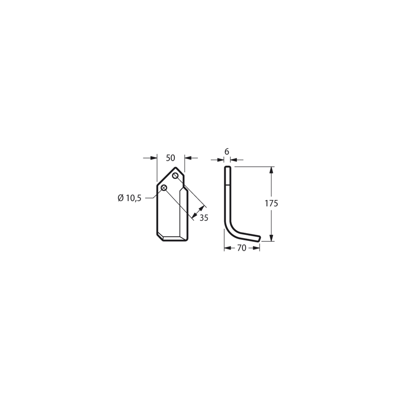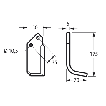 Peso Kg:0.400Lunghezza:175Altezza:70strozzatura:0Base Piatto50Spessore Piatto:6Diametro Foro 1:10Diametro Foro 2:Interasse foro 1:35Interasse foro 2: