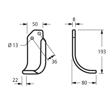 Peso Kg:0.630Lunghezza:193Altezza:80strozzatura:22Base Piatto50Spessore Piatto:8Diametro Foro 1:13Diametro Foro 2:Interasse foro 1:36Interasse foro 2: