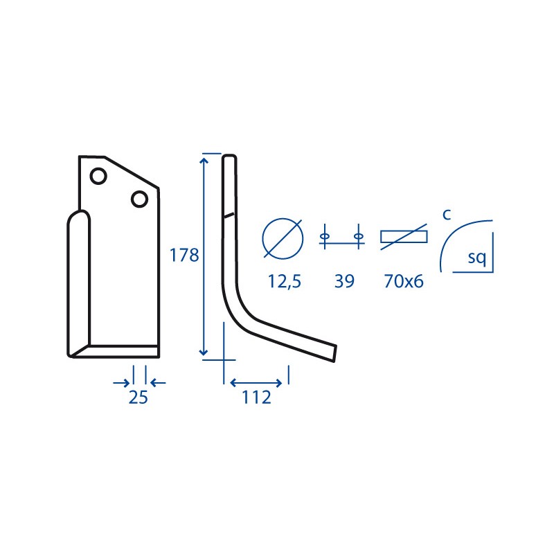 ApplicazioneFRESA 80 -Curvatura112 mm -Foro12,5 mm -Inclinazione25 mm -Interasse Fori39 mm -Lunghezza178 mm -Piatto70 x 6 mm -TipoCURVO - SQUADRO