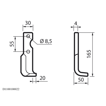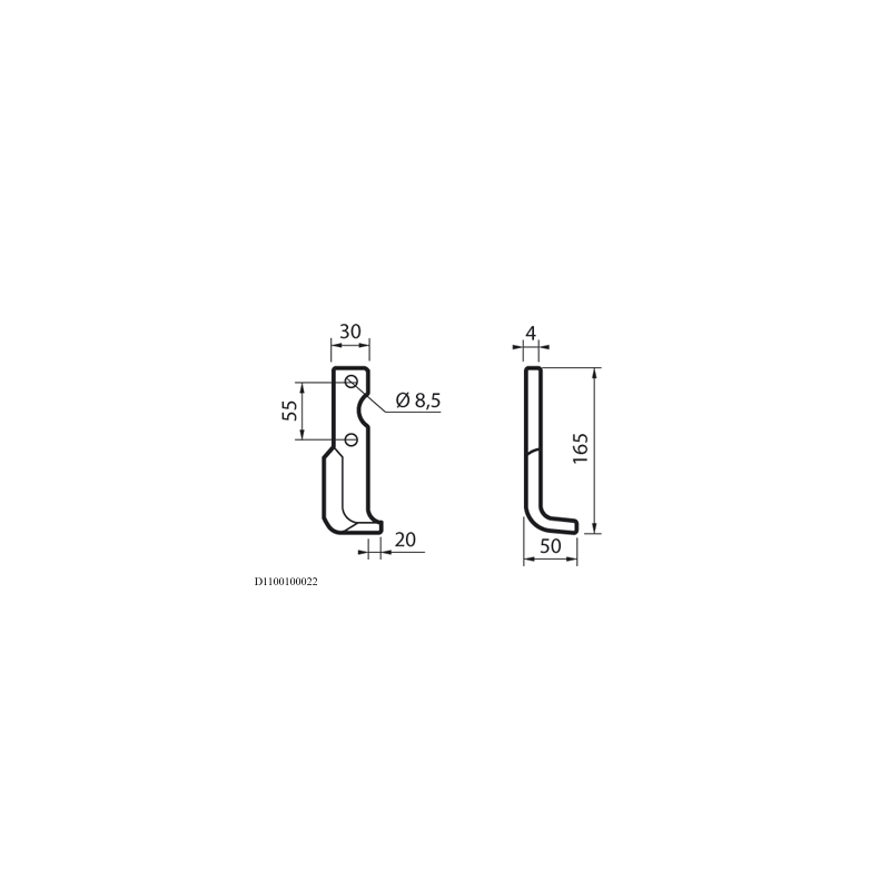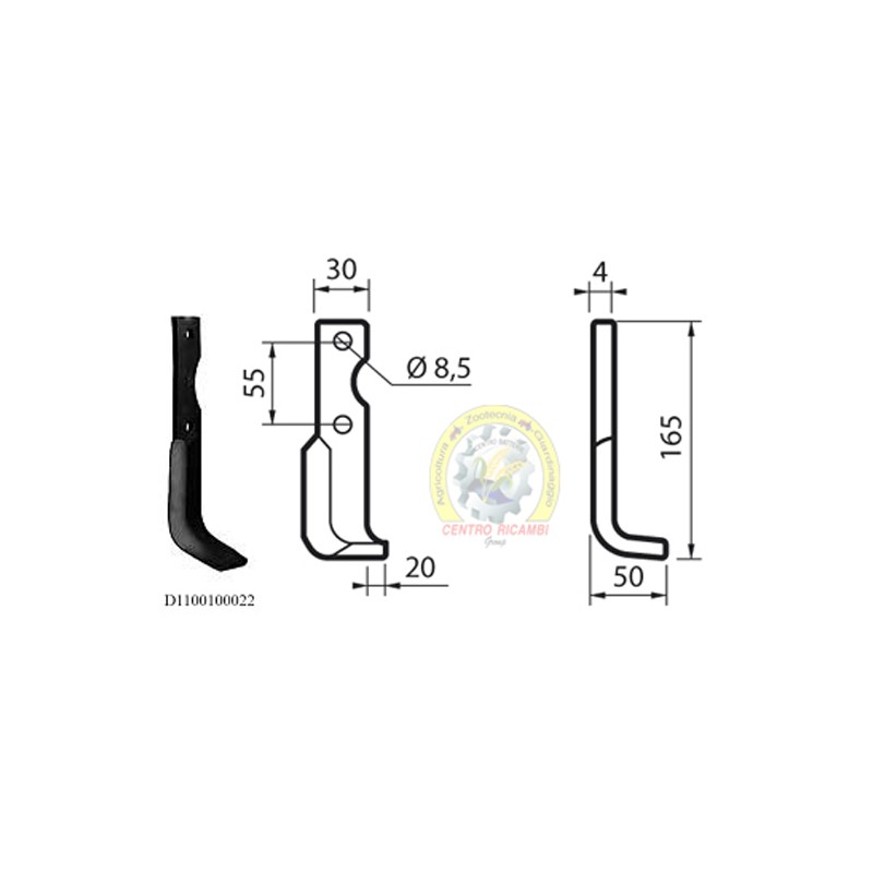 Anteprima Nuovo ZAPPA DX GOLDONI FRESA 22M N.T. 55175 Zappa curva destra Diametro del foro 10.5 mm Interasse 42 mm Piatto 45x5 mmzappa dx GOLDONI Fresa 22M NT(10PZ)