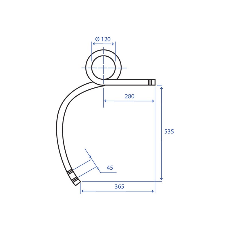 Molla standard tipo quadro Quadro 30x30 mm Lato Sinistromolla doppia spira sx30x30 s.vomereDiametro del foro - ?? 17 mm Quadro 30x30 mm Lato Sinistro Lunghezza - A 280 mm Altezza - B 535 mm Distanza - C 365 mm Diametro - D 120 mm Interasse - E 45 mm peso netto 12.973 kg