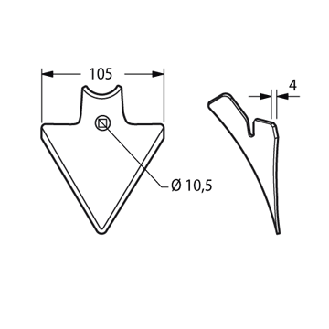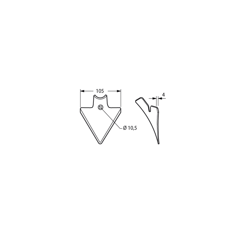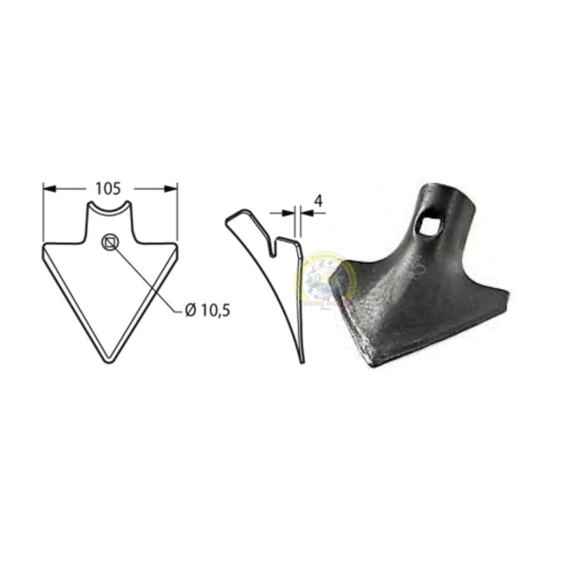 Vomere a lancia per vibrocoltivatoridimensioni 105x4 mm peso netto 0.228 kg