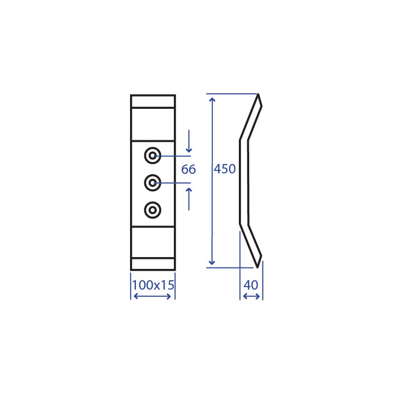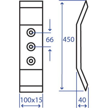 Lunghezza 450 mm Diametro fori svasati 14,5 mm Piatto 100x15 mm Interasse fori 66 - 66 mm peso netto 4.15 kg