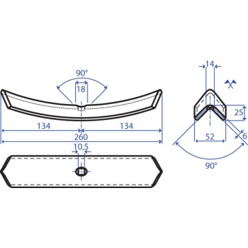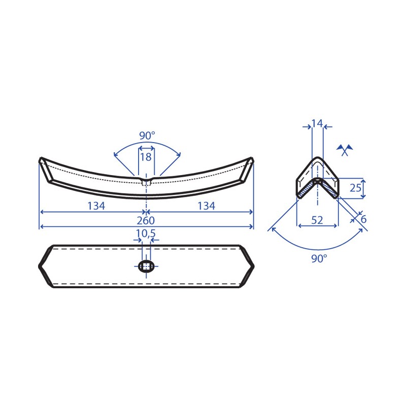 Vomere reversibile in acciaio Dimensioni 60x6x255 mm