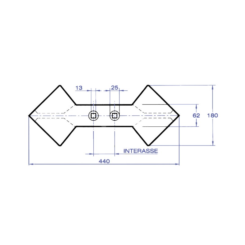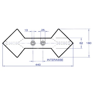 Foro13,5 mm -Interasse Fori45-75 mm -Lunghezza Totale440 mm -Piatto180 mm -