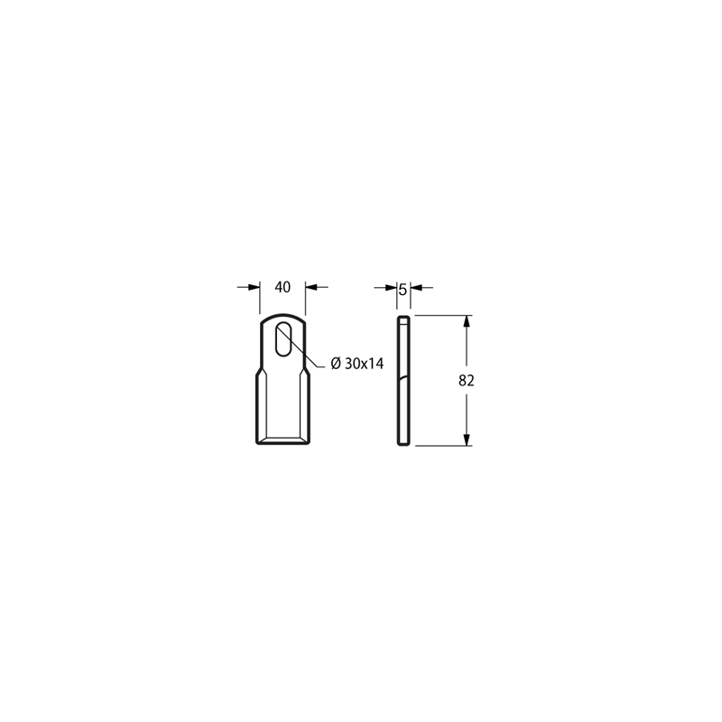 Coltello per trincia Foro 30x14 mm Piatto 40x5 mmLunghezza - LU 82 mm Altezza - LA 0 mm Diametro del foro 30x14 mm Larghezza piatto 40 mm Spessore piatto 5 mm Forma I peso netto 0.115 kg