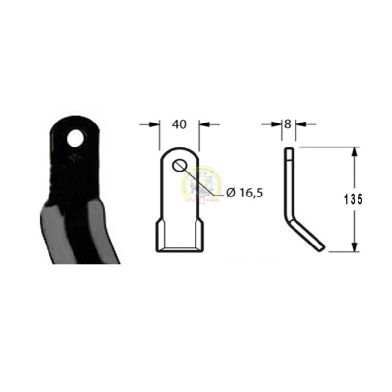 Coltello per trincia Foro 16.5 mm Piatto 40x8 mmOEM 00023000 6060000Lunghezza - LU 135 mm Altezza - LA 40 mm Diametro del foro 16.5 mm Larghezza piatto 40 mm Spessore piatto 8 mm Forma Y peso netto 0.34 kg