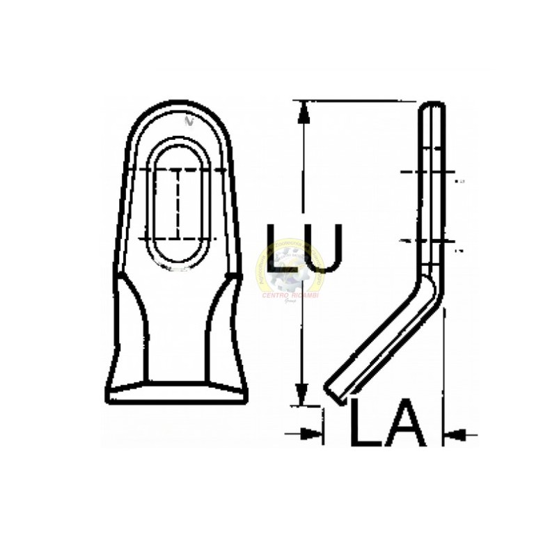 Coltello per trincia Foro 16x39 mm Piatto 45x8 mmOEM 00023056Lunghezza - LU 99 mm Altezza - LA 40 mm Diametro del foro 16x39 mm Larghezza piatto 45 mm Spessore piatto 8 mm Forma Y peso netto 0.21 kg
