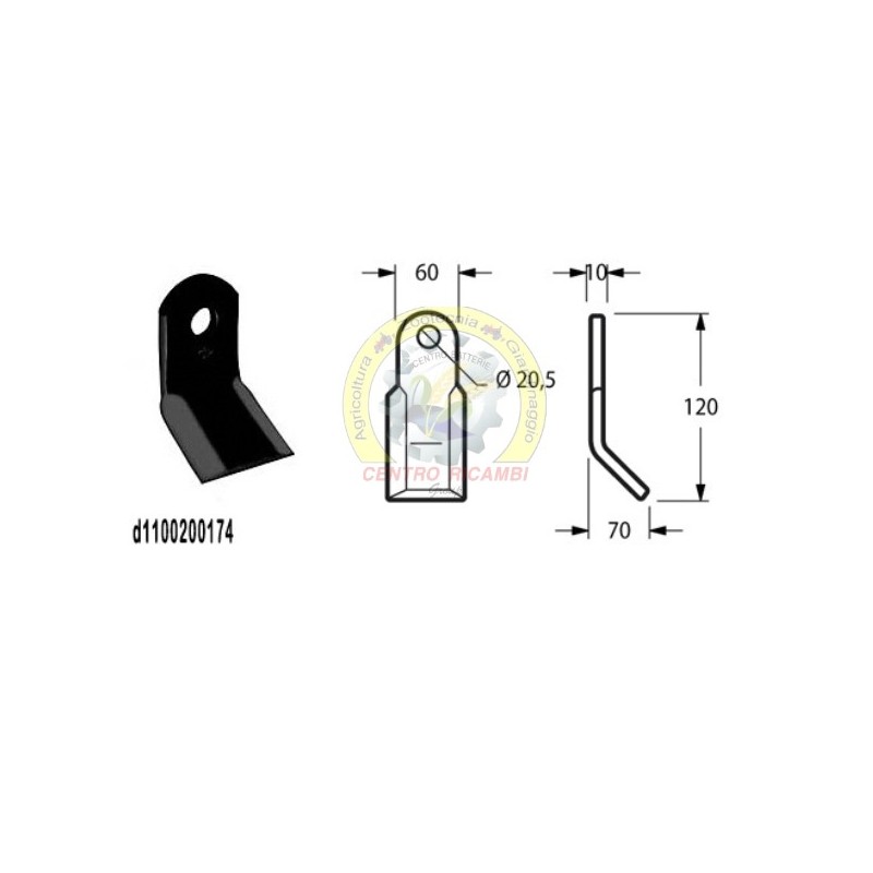 Coltello per trincia Foro 20.5 mm Piatto 60x10 mmLunghezza - LU 115 mm Altezza - LA 70 mm Diametro del foro 20.5 mm Larghezza piatto 60 mm Spessore piatto 10 mm Forma Y peso netto 0.635 kg