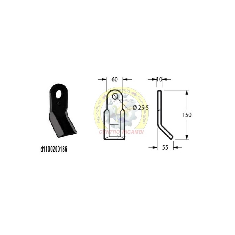 Coltello per trincia Foro 25.5 mm Piatto 60x10 mmLunghezza - LU 150 mm Altezza - LA 55 mm Diametro del foro 25.5 mm Larghezza piatto 60 mm Spessore piatto 10 mm Forma Y peso netto 0.73 kg