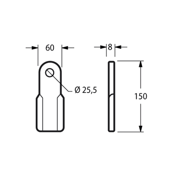 Coltello per trincia Foro 25.5 mm Piatto 60x8 mmOEM 0901148Lunghezza - LU 150 mm Altezza - LA 0 mm Diametro del foro 25.5 mm Larghezza piatto 60 mm Spessore piatto 8 mm Forma I peso netto 0.5 kg
