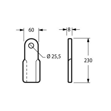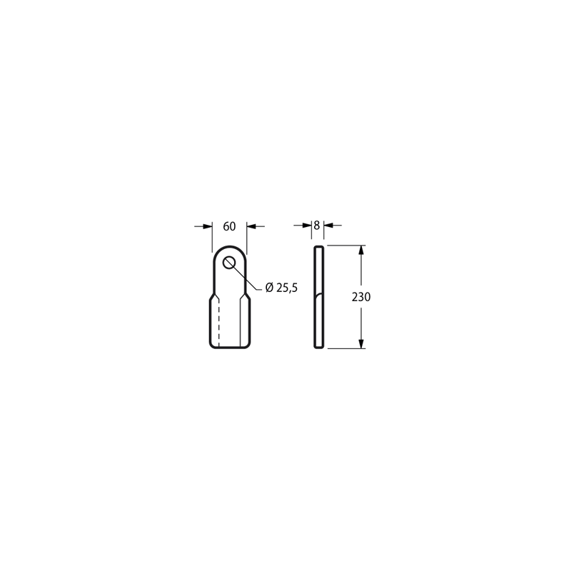 Coltello per trincia Foro 25.5 mm Piatto 60x8 mmLunghezza - LU 245 mm Altezza - LA 0 mm Diametro del foro 25.5 mm Larghezza piatto 60 mm Spessore piatto 8 mm Forma I peso netto 0.86 kg
