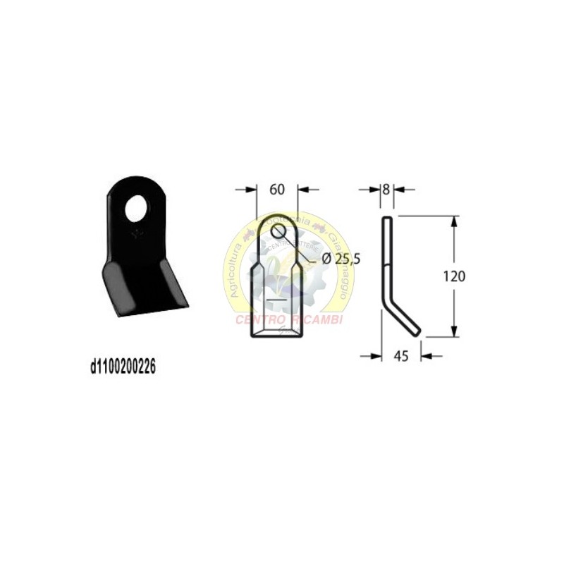 Coltello per trincia Foro 25.5 mm Piatto 60x8 mmOEM 0901085Lunghezza - LU 122 mm Altezza - LA 45 mm Diametro del foro 25.5 mm Larghezza piatto 60 mm Spessore piatto 8 mm Forma Y peso netto 0.45 kg
