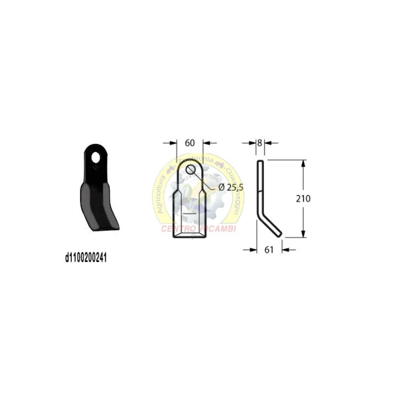 Coltello per trincia Foro 25.5 mm Piatto 60x8 mmOEM 11019006Lunghezza - LU 210 mm Altezza - LA 61 mm Diametro del foro 25.5 mm Larghezza piatto 60 mm Spessore piatto 8 mm Forma Y peso netto 0.92 kg